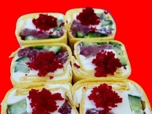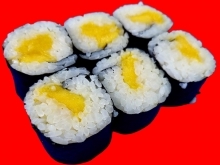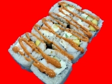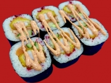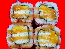Рис, крем-краб, манго, манго Чили соус, икра масаго