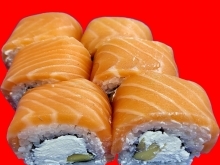 Рис, жареный лосось , огурец, сыр, икра масаго. (6 шт )