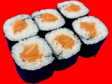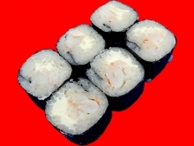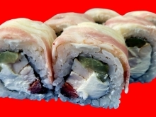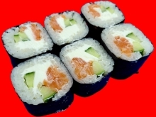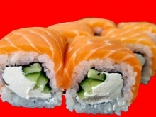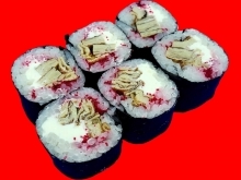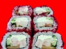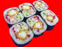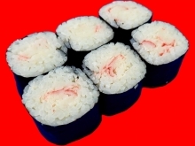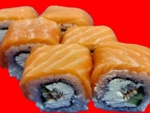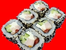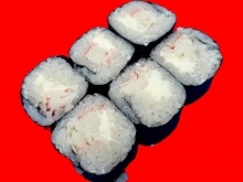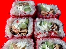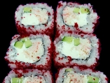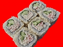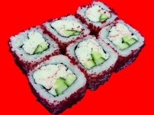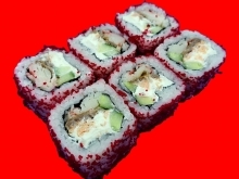 Рис, лосось, крем-краб, огурец, икра масаго.