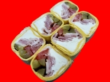 Рис, сыр, огурец, помидор, курица копчëная, икра масаго