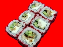Рис, крем-краб, сыр, огурец, икра масаго.